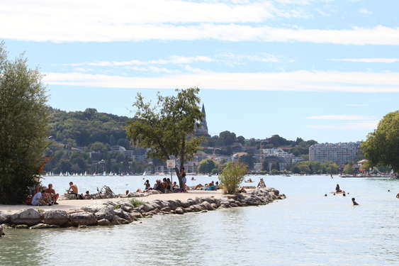 Dieser Strand gehört zusammen mit dem Strand des Marquisats zu den einzigen kostenlosen Stränden in Annecy. Der Grund des Sees besteht aus Sand und das sanfte Gefälle erleichtert auch den Jüngsten den Zugang zum Wasser.